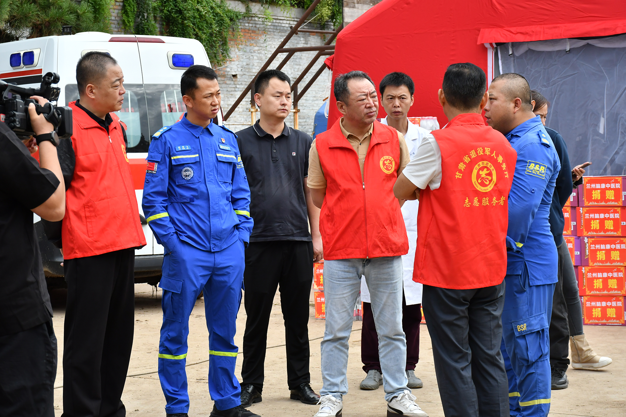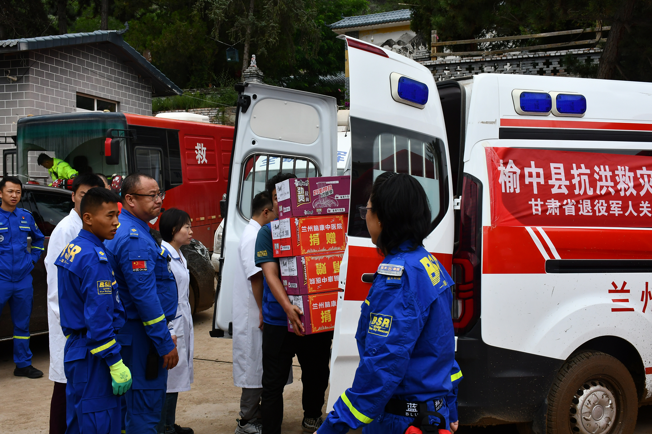 甘肃省退役军人关爱基金会组织联合兰州脑康中医院,向灾区捐赠抗洪救灾应急食品药品救援物资共计1.2万余元,其中包括食品、饮用水以及药品、医用碘伏、消毒剂等医疗救援装备交到退役军人志愿服务队(甘肃蓝天救援队)手中。